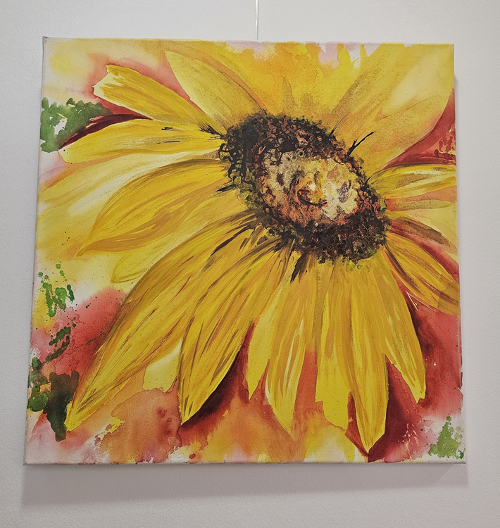 Fröhliche Farben und Naturmotive in Acryl: Im 1. Stock und im Lesesaal der Gemeindebücherei sind derzeit Bilder der Warngauer Künstlerin Johanna Betzinger ausgestellt.